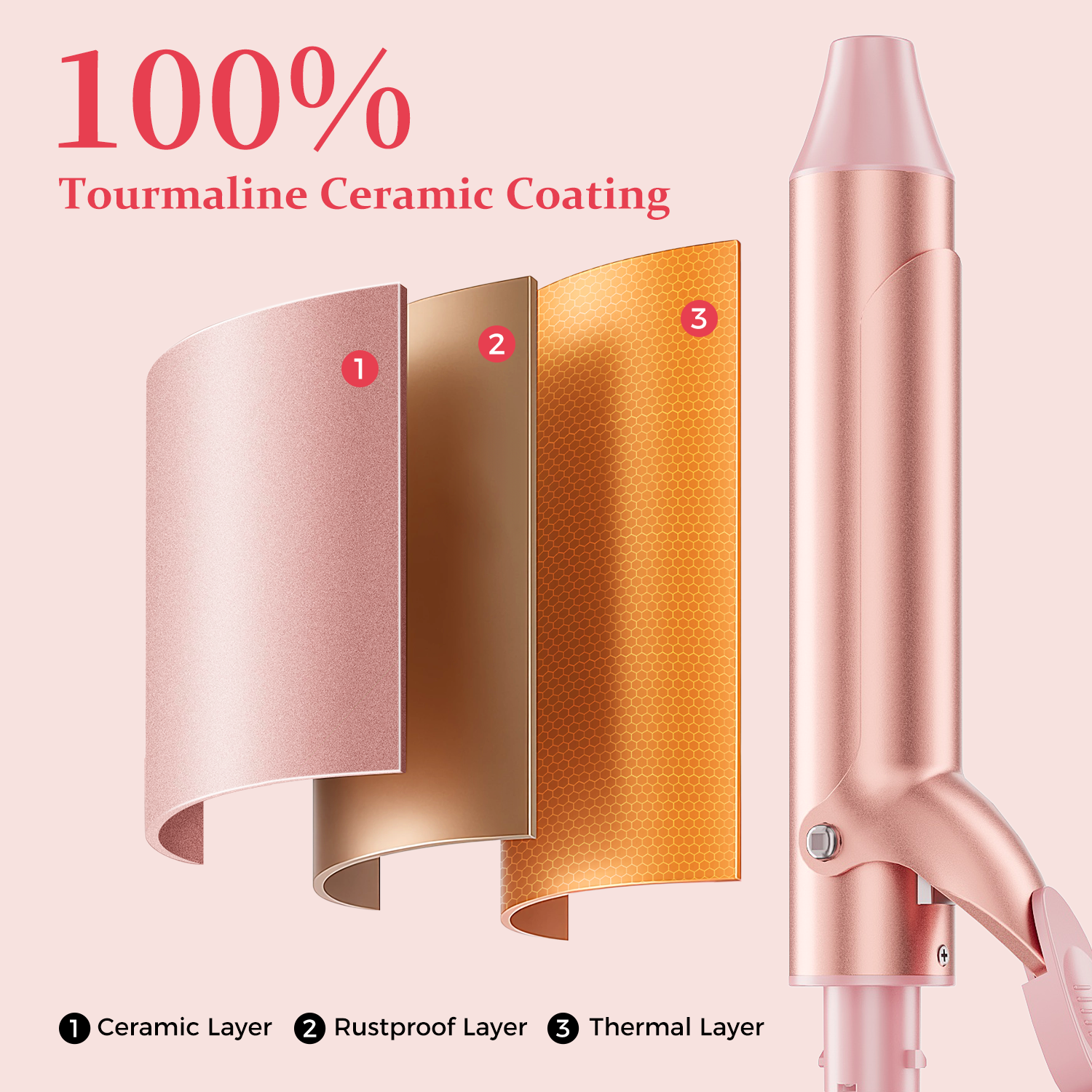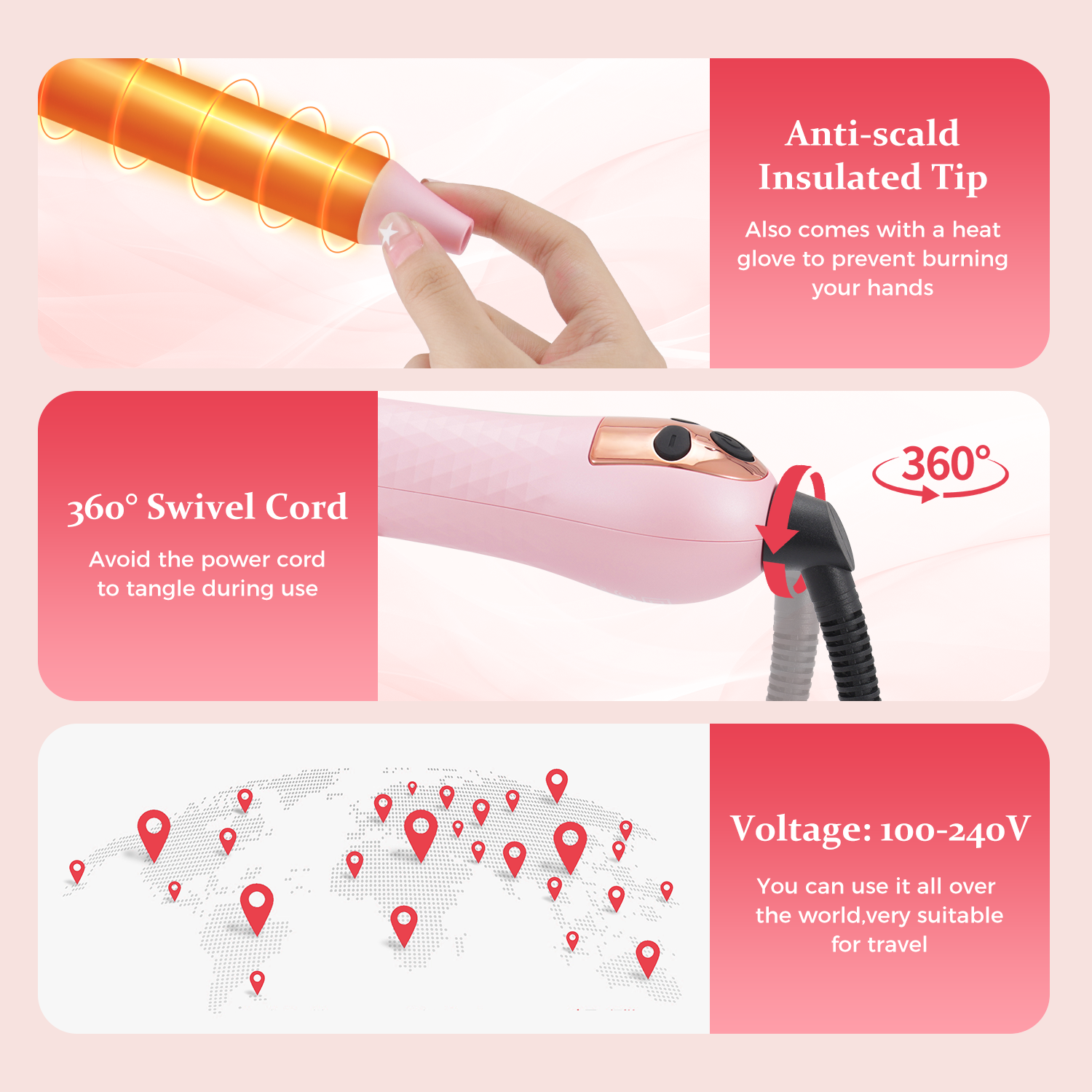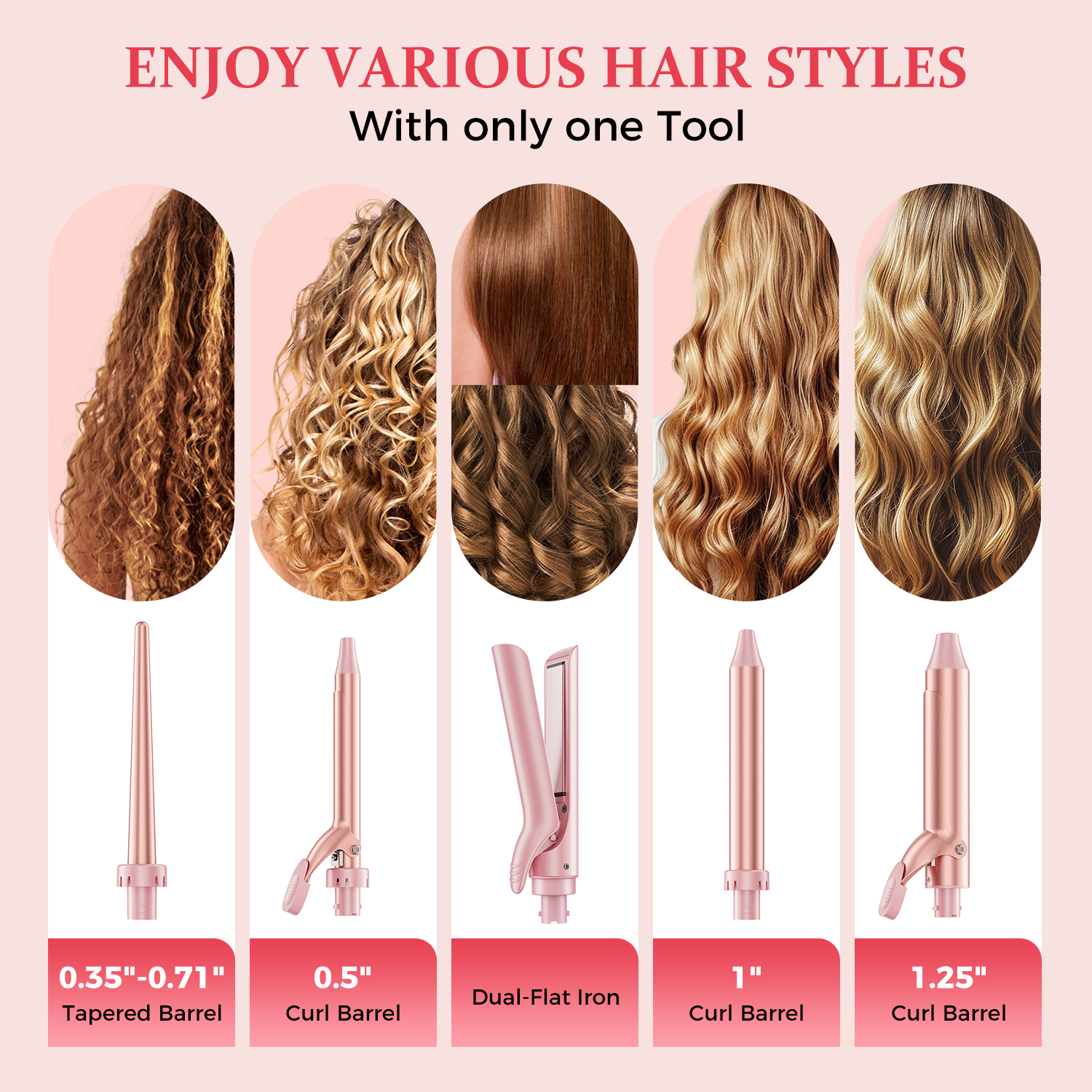 Goolioo 5 in 1 Curling Iron Set, Curling Wand set with Flat Iron Hair Straightener, Dual Voltage Hair Curler,Pink
