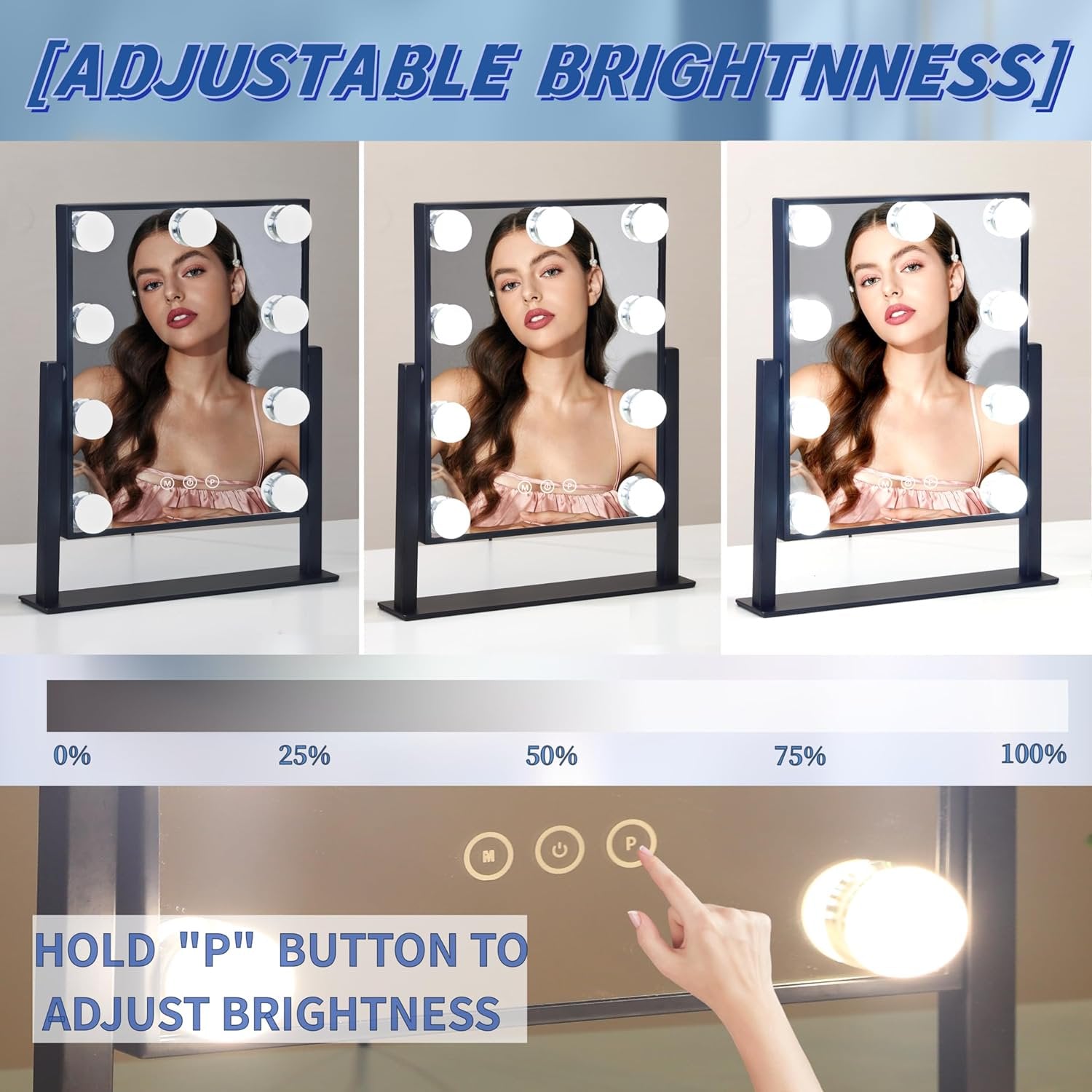 Goolioo Vanity Mirror with Lights, Hollywood Lighted Vanity Makeup Mirror, Detachable 10x Magnification 360°Ratation, Black